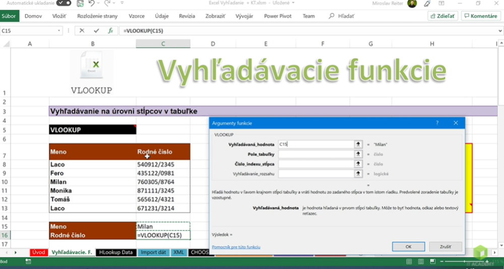 Online kurz Microsoft Excel - Vyhľadávacie Funkcie a Vzorce
