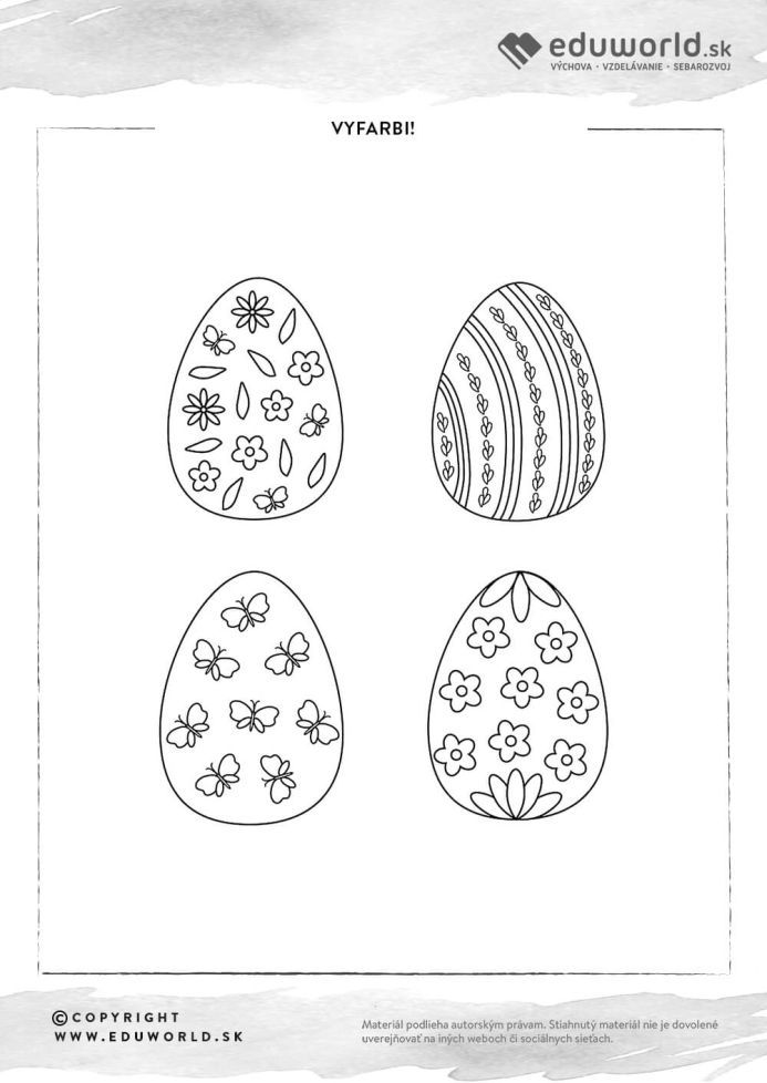 Omaľovánky pre deti / Všetky oblasti Omaľovánka s veľkonočnými vajíčkami Redakcia Autor materiálu © Copyright info materiál pre: Materské školy rozsah: 0 strany