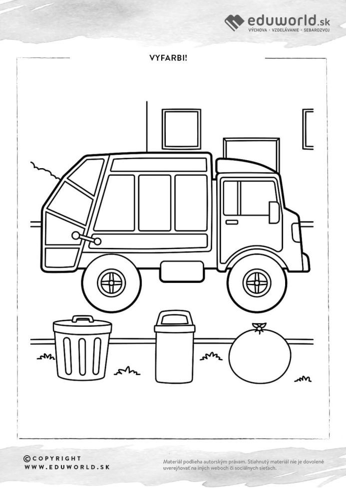 Omaľovánky pre deti / Všetky oblasti Omaľovánka smetiarske auto Redakcia Autor materiálu © Copyright info materiál pre: Materské školy rozsah: 0 strany Vyfarbi si smetiarske auto!